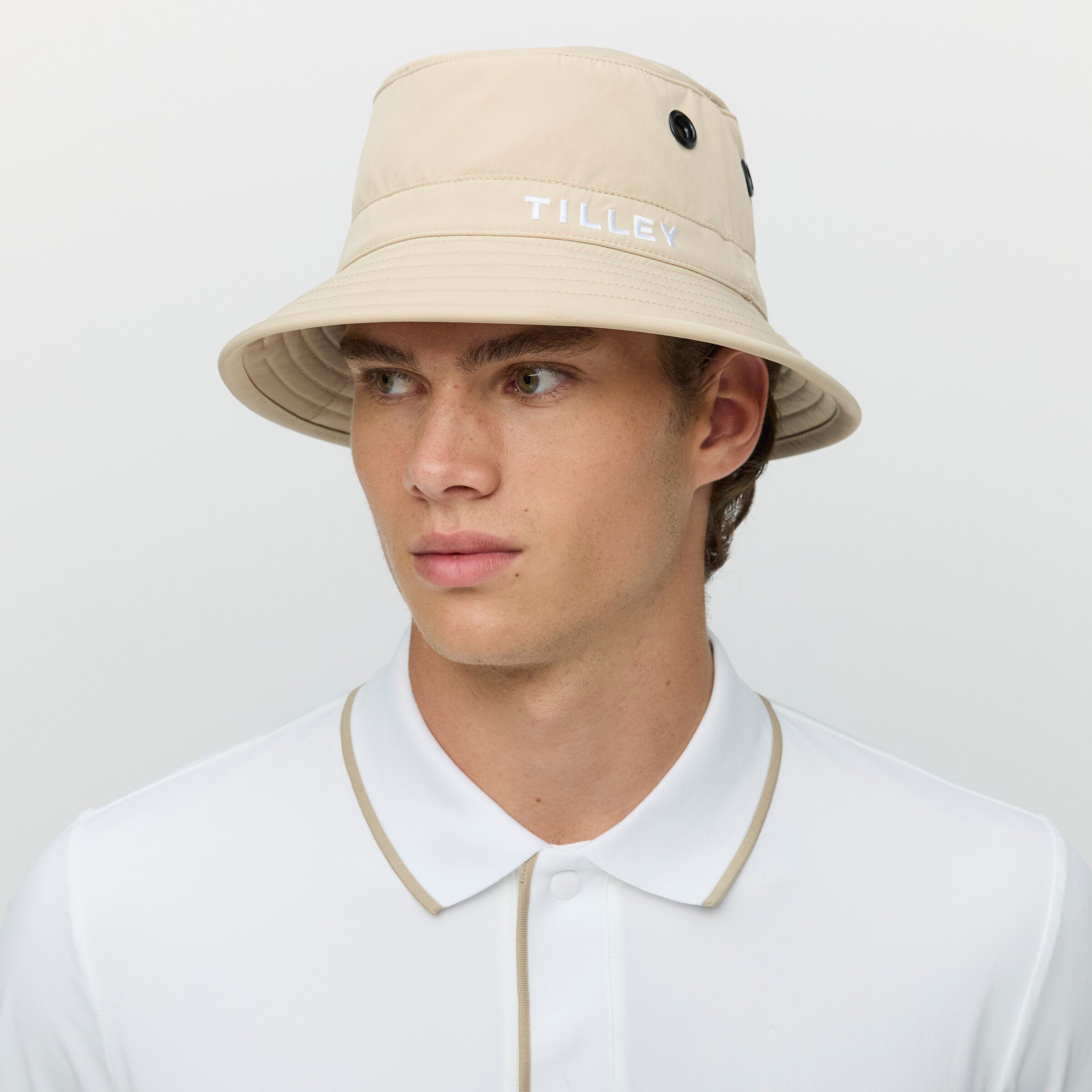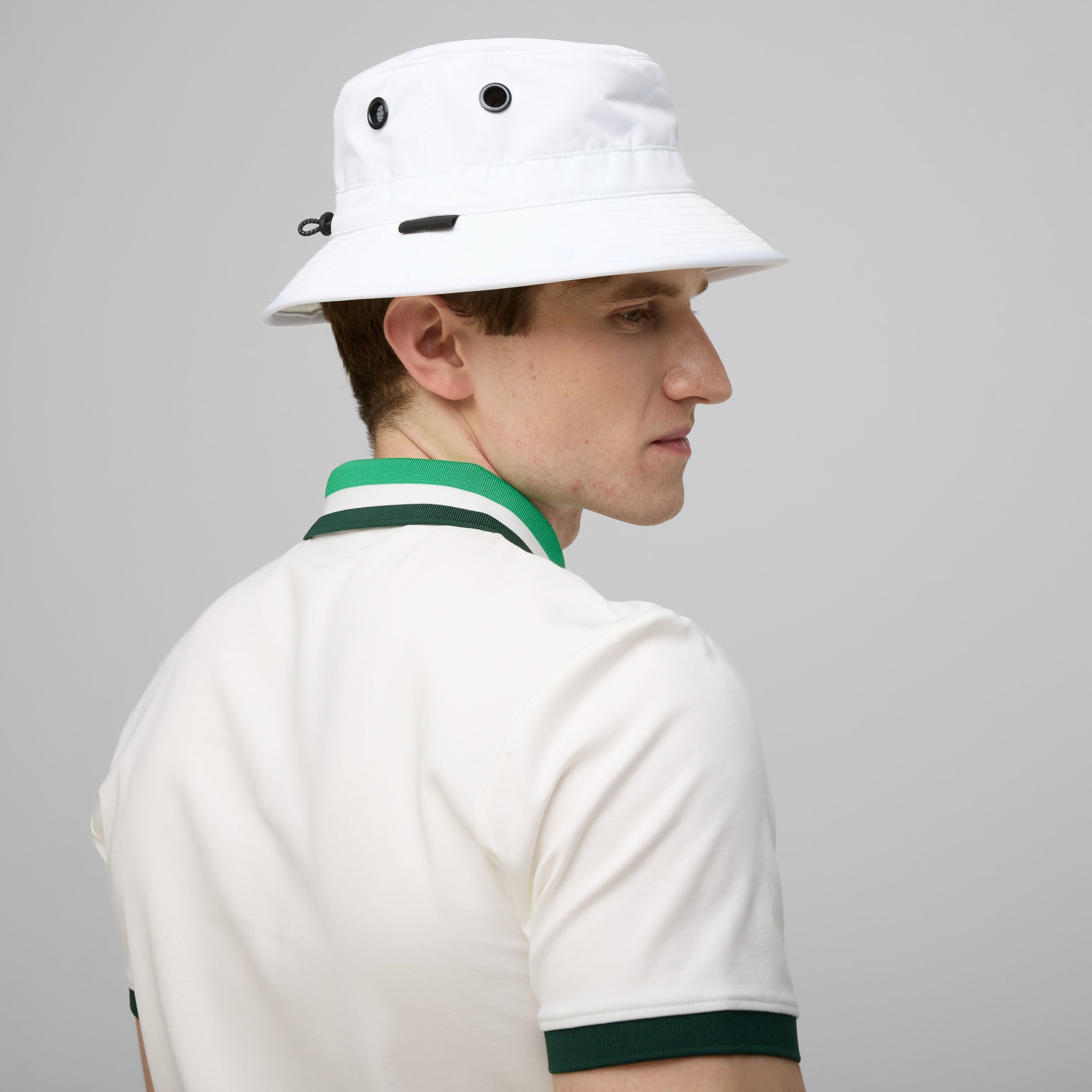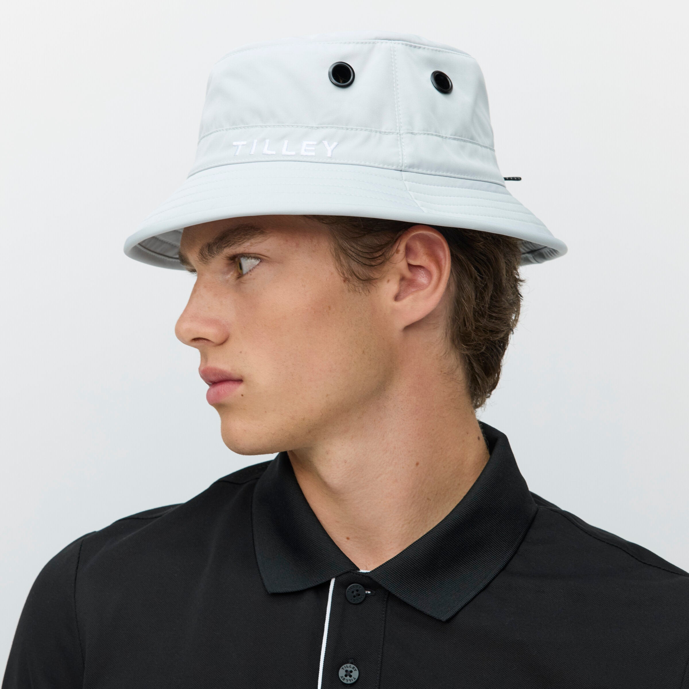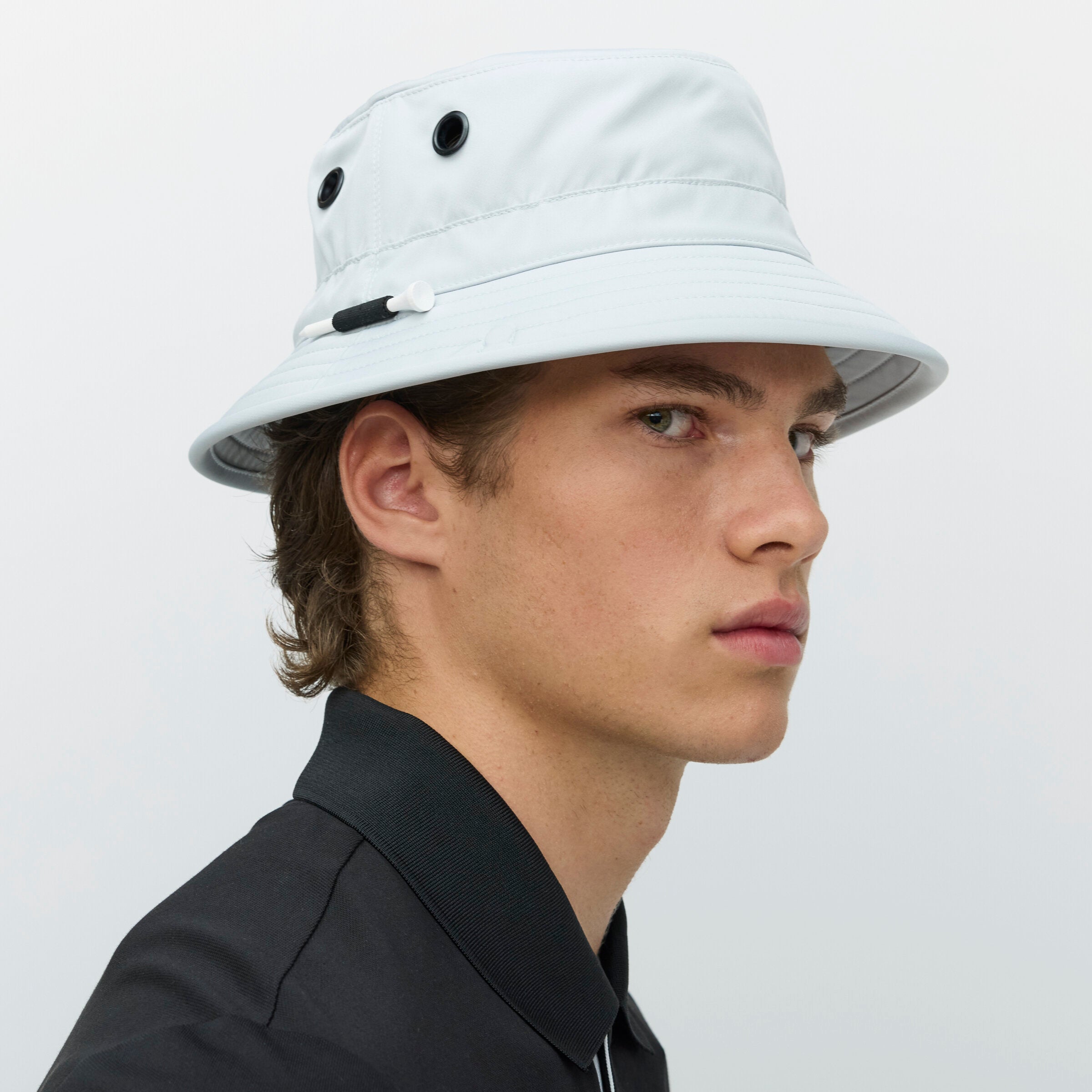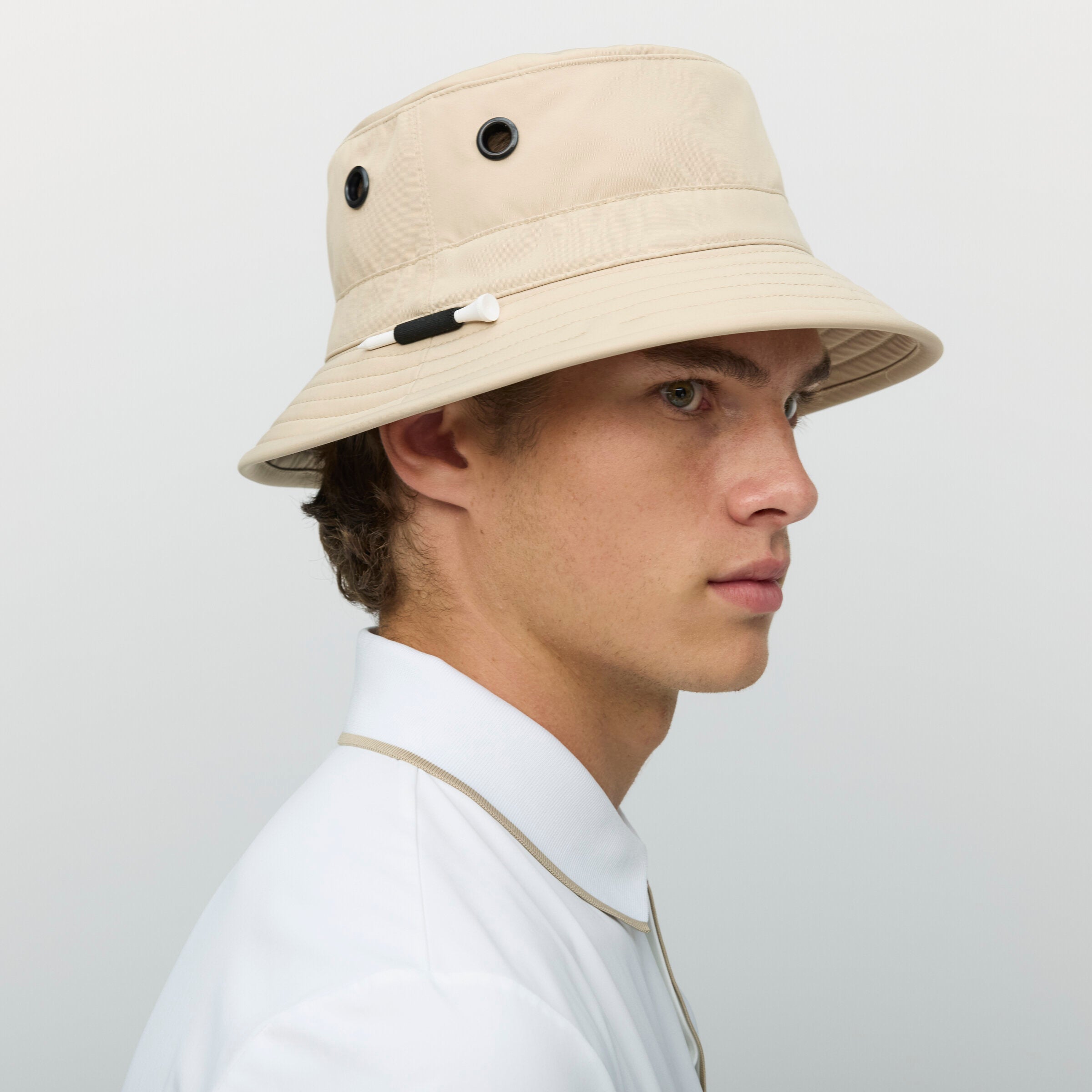 Keep your head cool and covered while you’re out on the course. Our modern take on a bucket hat was designed with golfers in mind. It’s made from a light, rain-resistant, and breathable material that maintains a comfortable climate. Even looking for a tee is a breeze, thanks to the holder built into the brim. A stroke of genius.