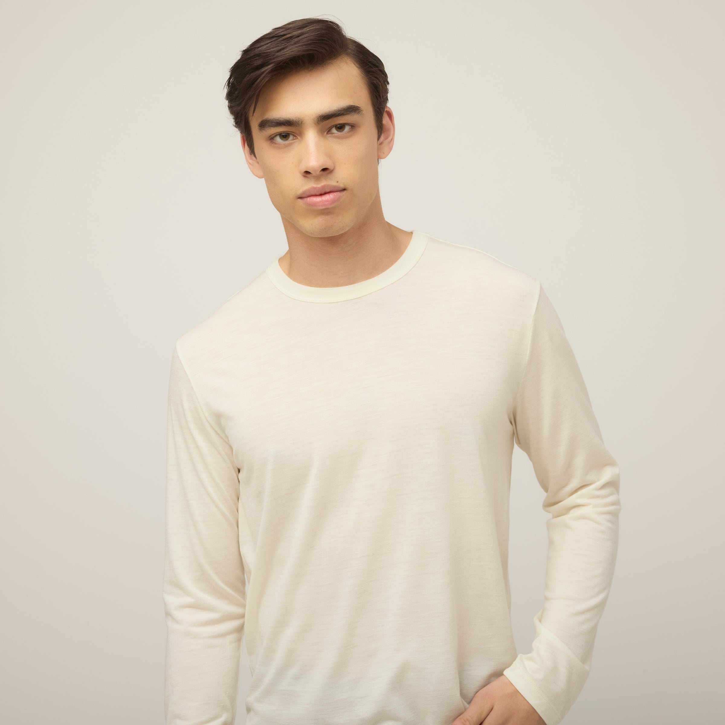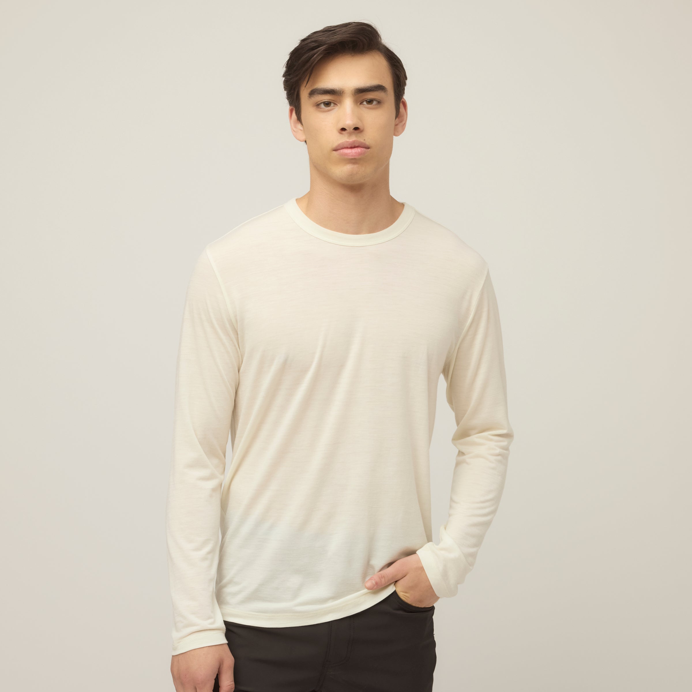 Crafted from Merino Wool, the Merino Long Sleeve T-shirt delivers natural temperature regulation, moisture-wicking performance, and exceptional softness for all-day comfort, whether worn solo or as a baselayer. Designed with a classic fit, regular shoulders, and standard length for effortless layering.