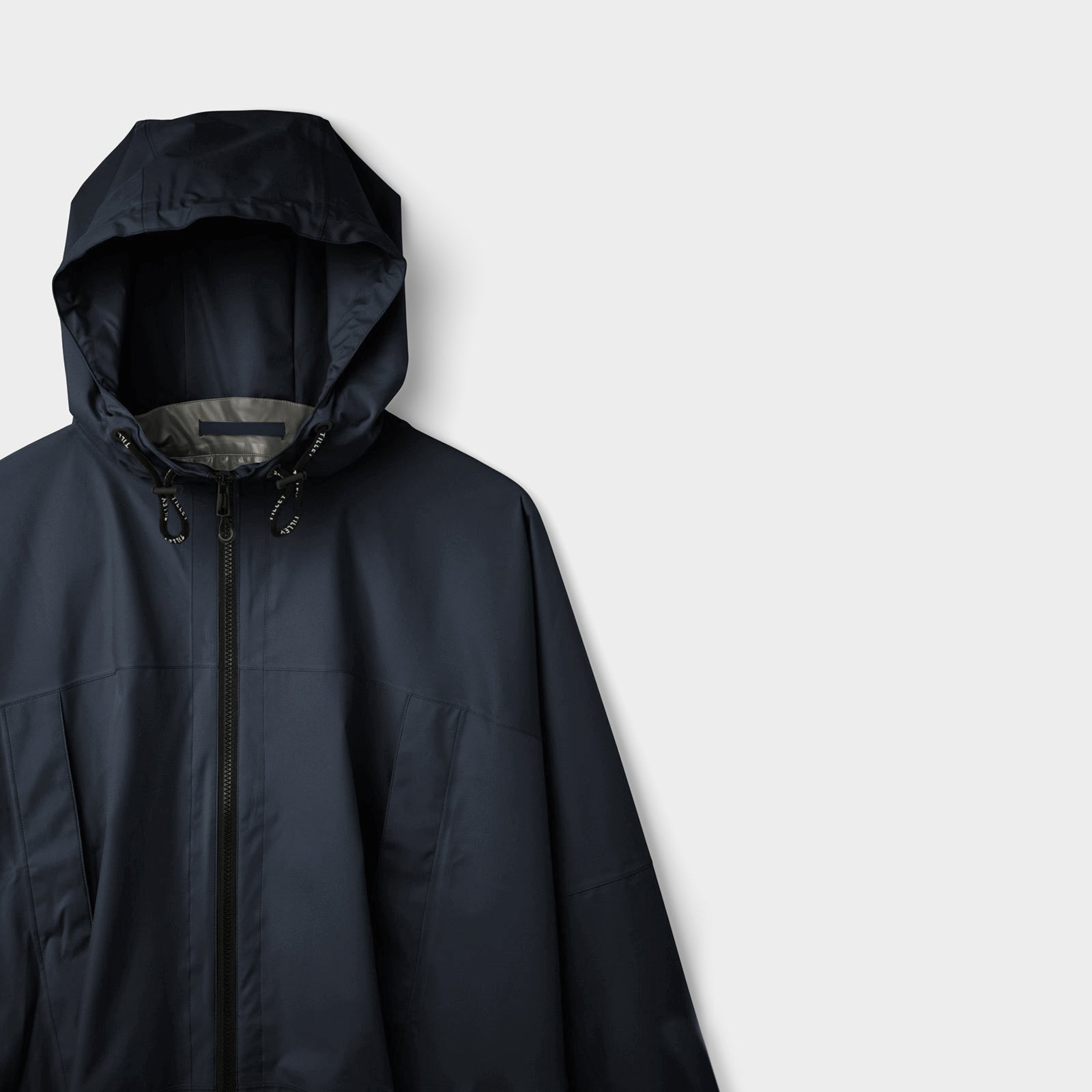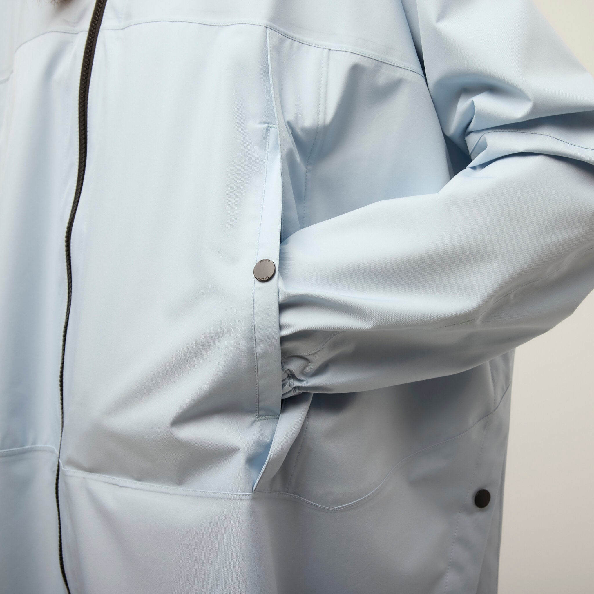Flip the hood onto the upper chest of the jacket so it lays flat. Fold the arms over each other on the jacket's torso. Folding your raincoat poncho into a square shape helps it fit better into the square-shaped pocket.