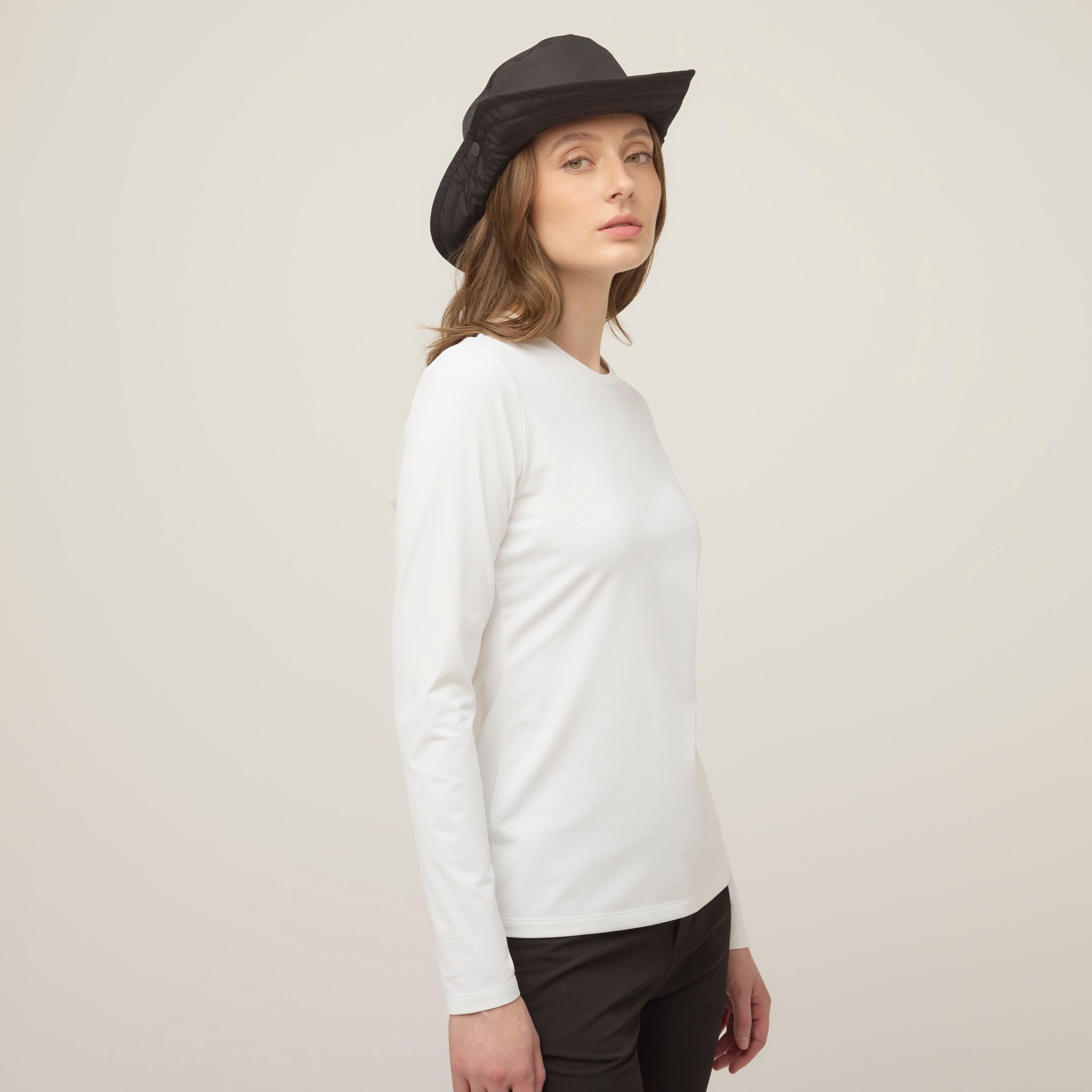 An ideal everyday layering piece, crafted using a thermal stretch fabric designed to provide lightweight, reliable warmth. The smooth finish on the outside of the material offers a refined look on its own and slides easily underneath other layers, while the interior is brushed to prevent heat from escaping and make it even softer against your skin.