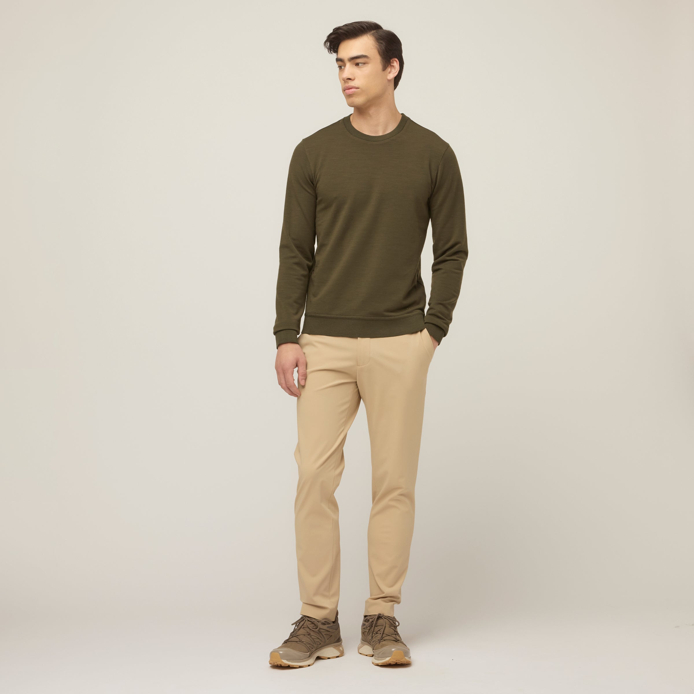 Experience our ultra soft merino knit french terry in a tried and true crewneck silhouette to keep you cozy as you explore the outdoors or wander the city in style. The natural performance abilities of merino make it naturally regulate temperature, antibacterial, odor eliminating and easily washed.