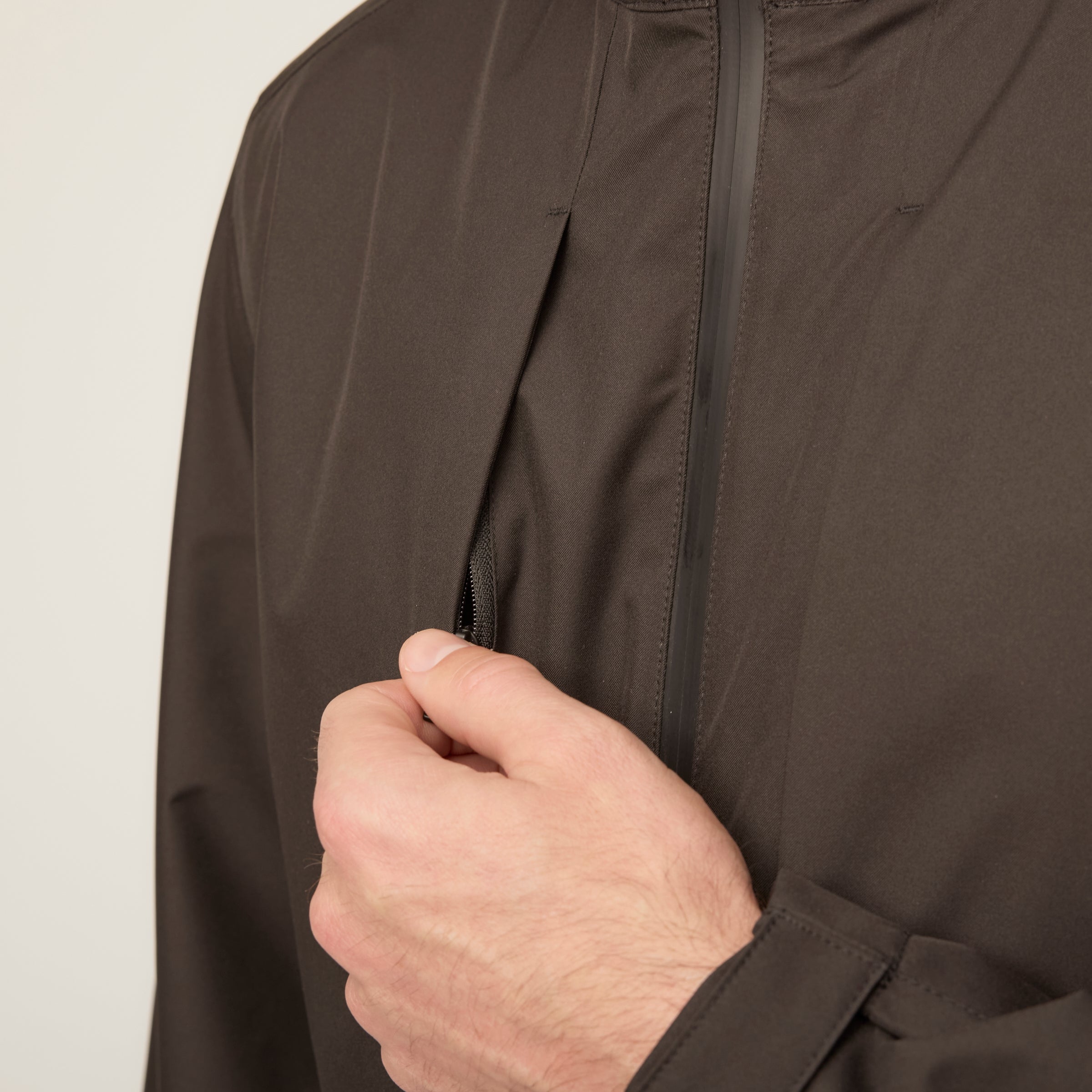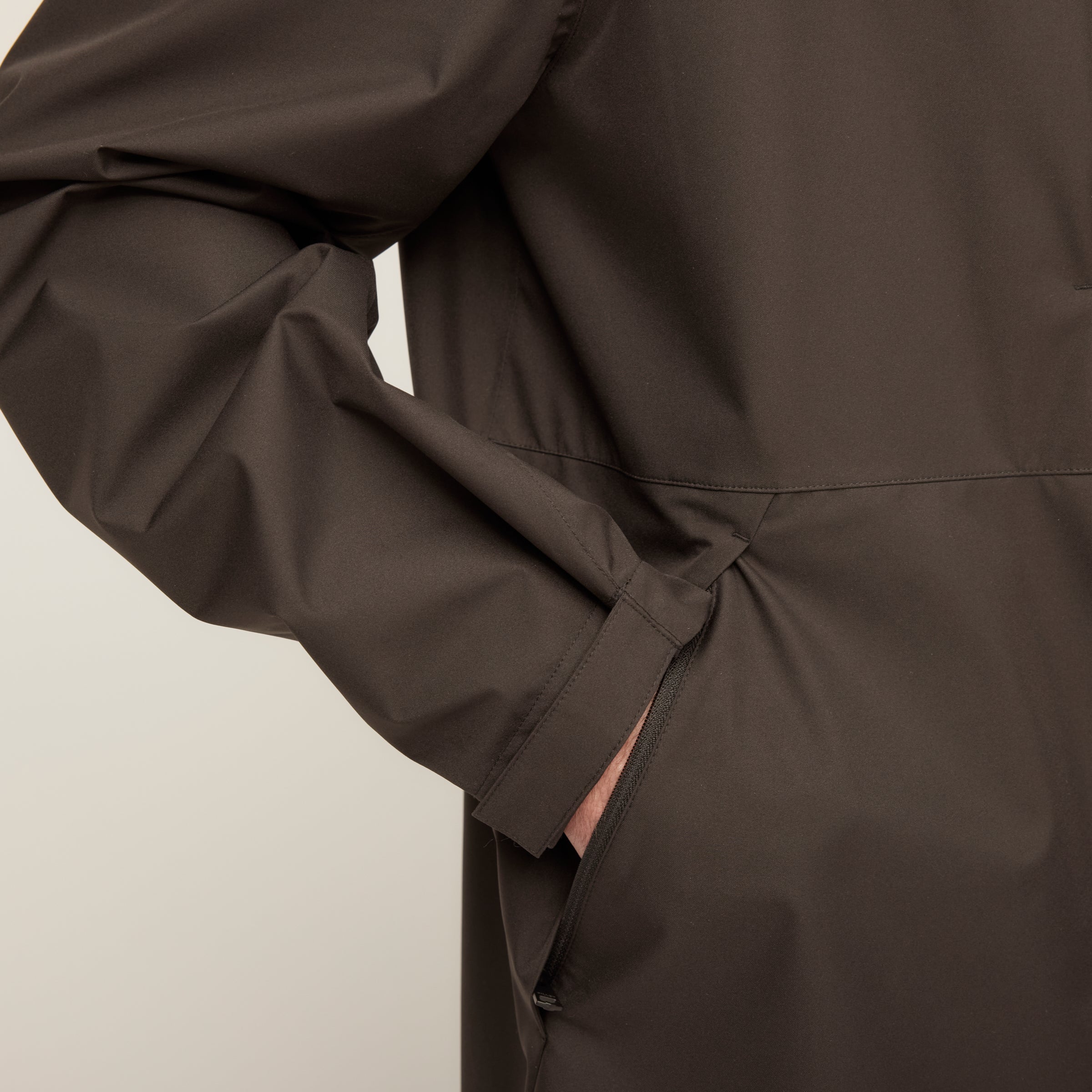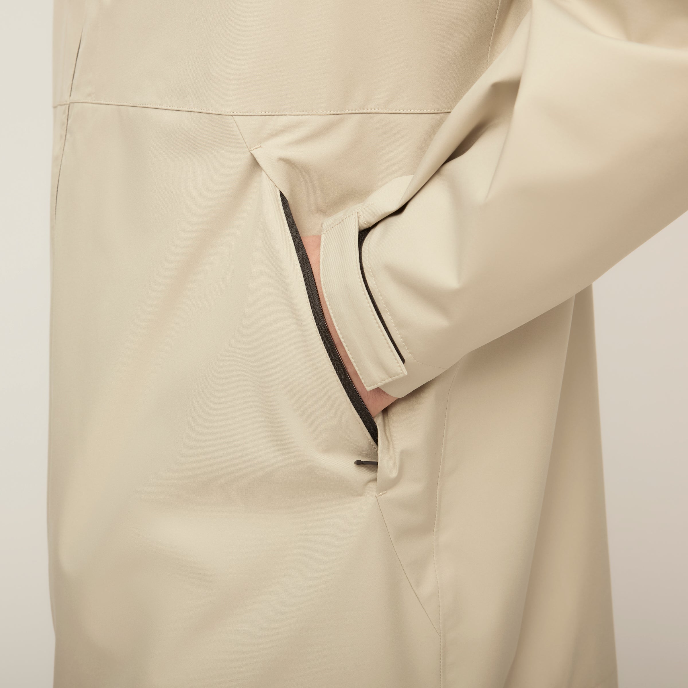 This is packable rain protection with even more coverage built in. Made from our Rainshield fabric with 10,000mm waterproof protection, a DWR finish, windproof performance, and sealed seams, it’s built to hold up when the weather settles in. Its oversized, hip-length shape makes it easy to pull on over layers, while extra-long sleeves, a 3-panel hood, and adjustable Velcro cuffs help keep the elements from creeping in. Finished with zip pockets to keep essentials secure and pit zips for extra ventilation.